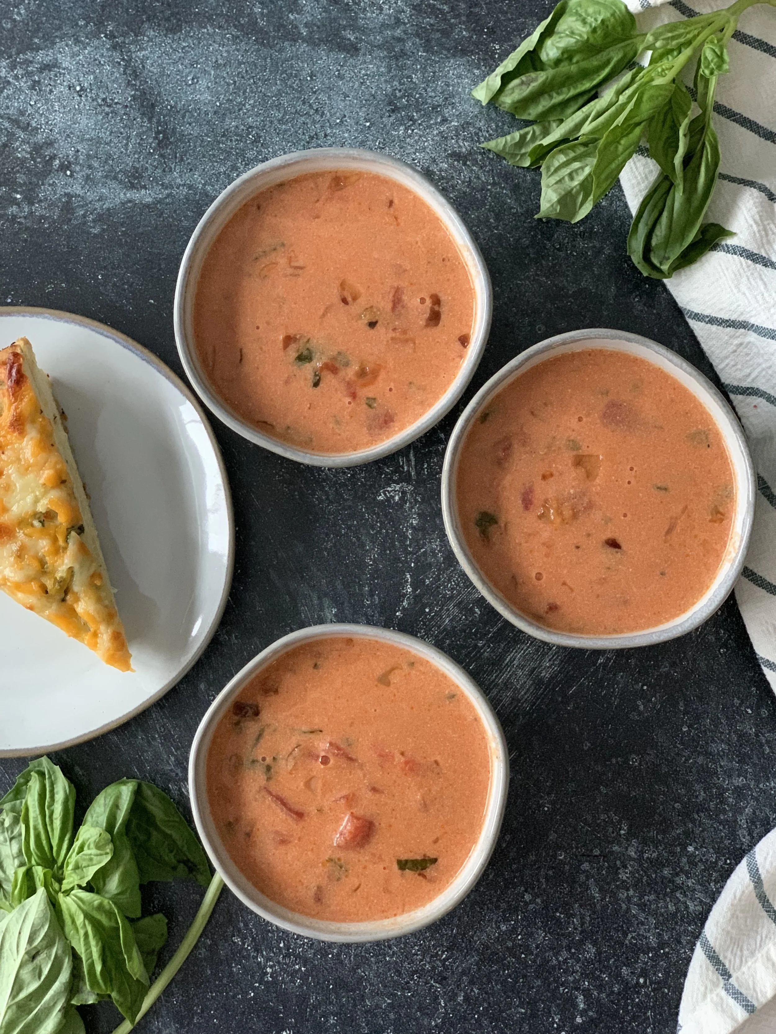 This soup is comfort in a bowl! It’s a cinch to make and goes perfectly with grilled cheese or cheesy bread on a cozy night in. Be sure to use fresh basil - it makes all the difference!